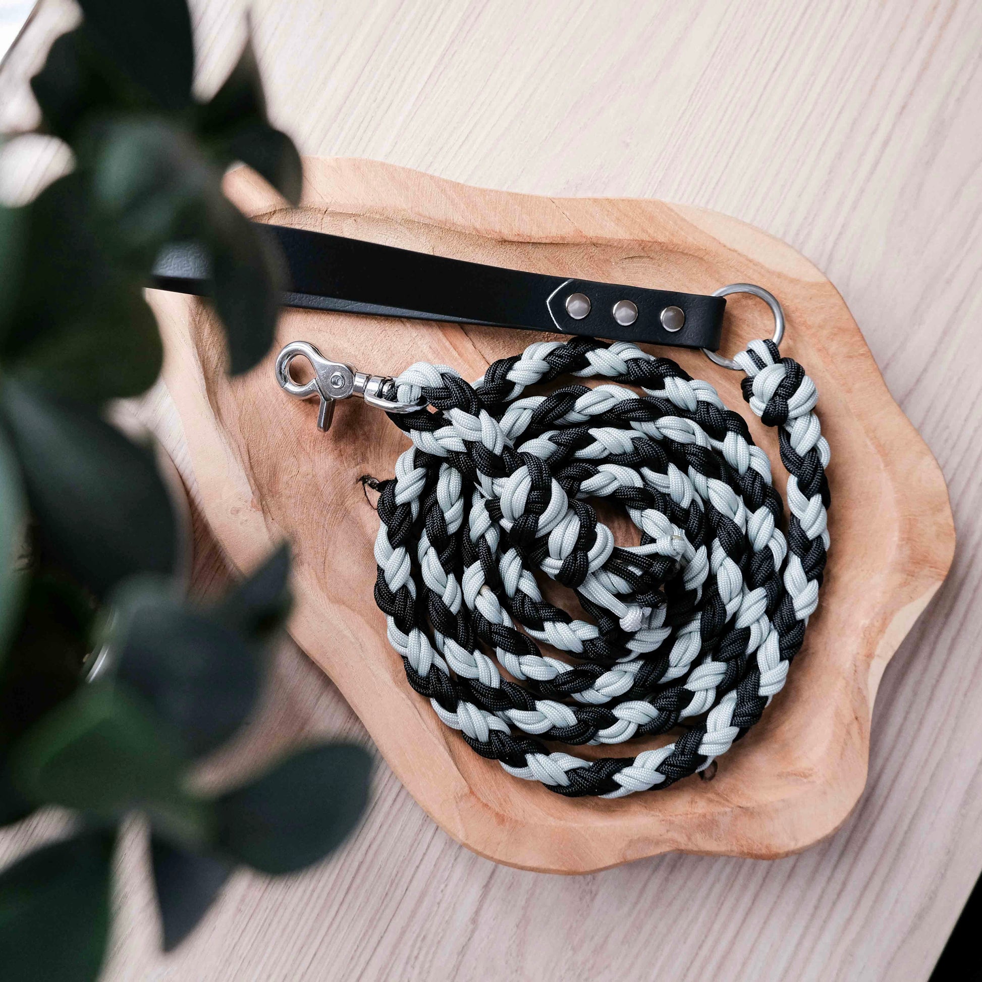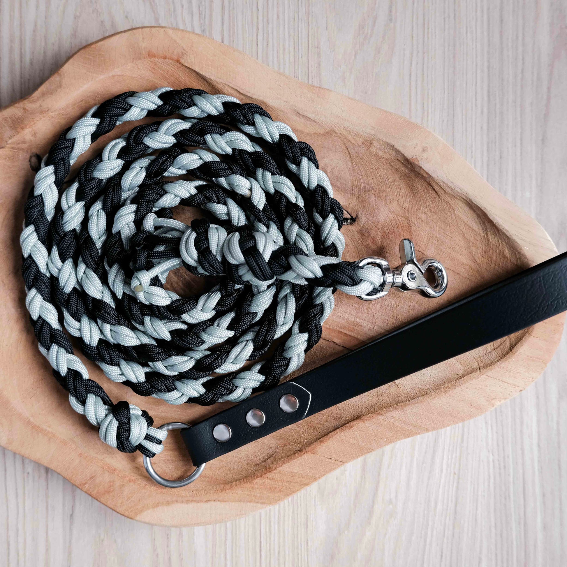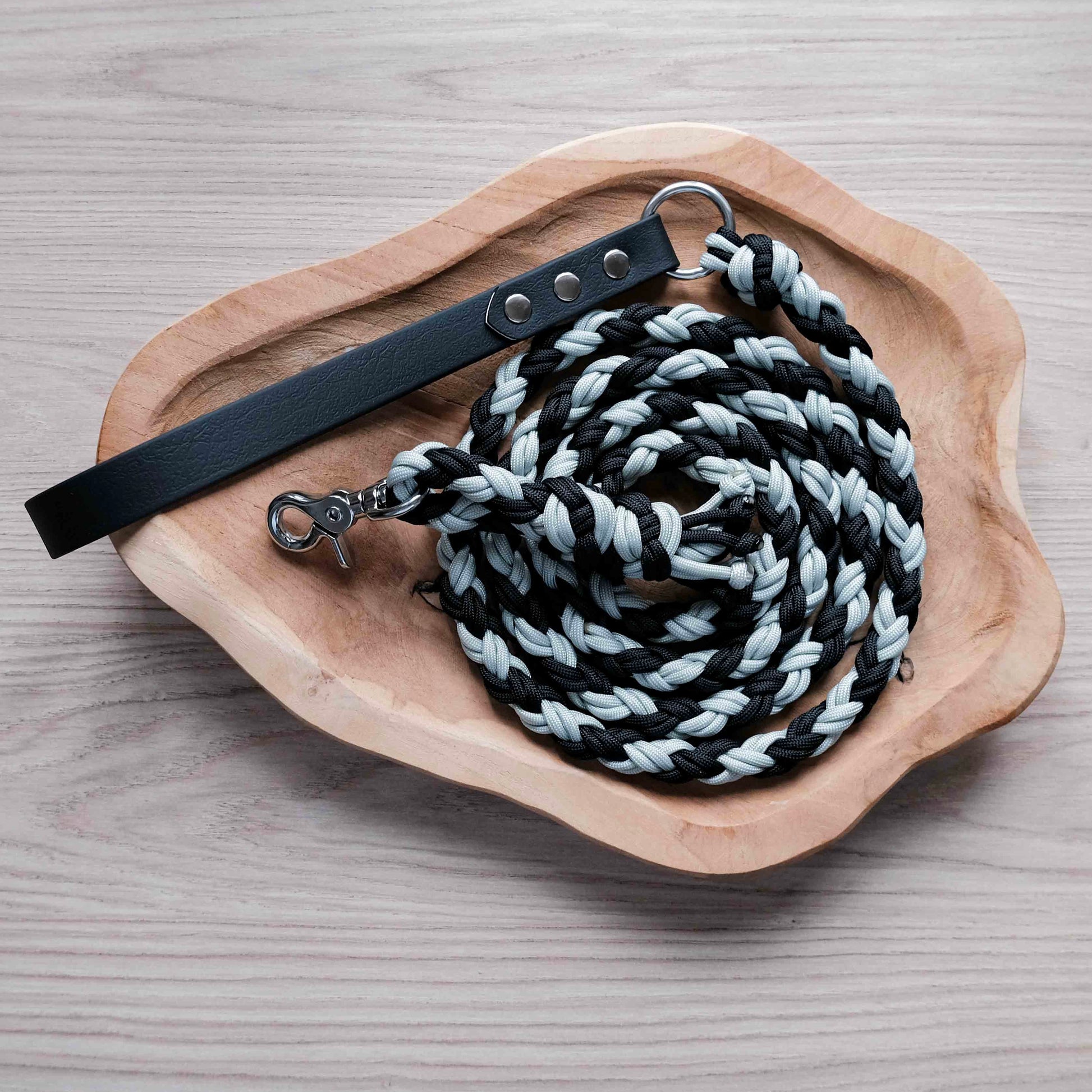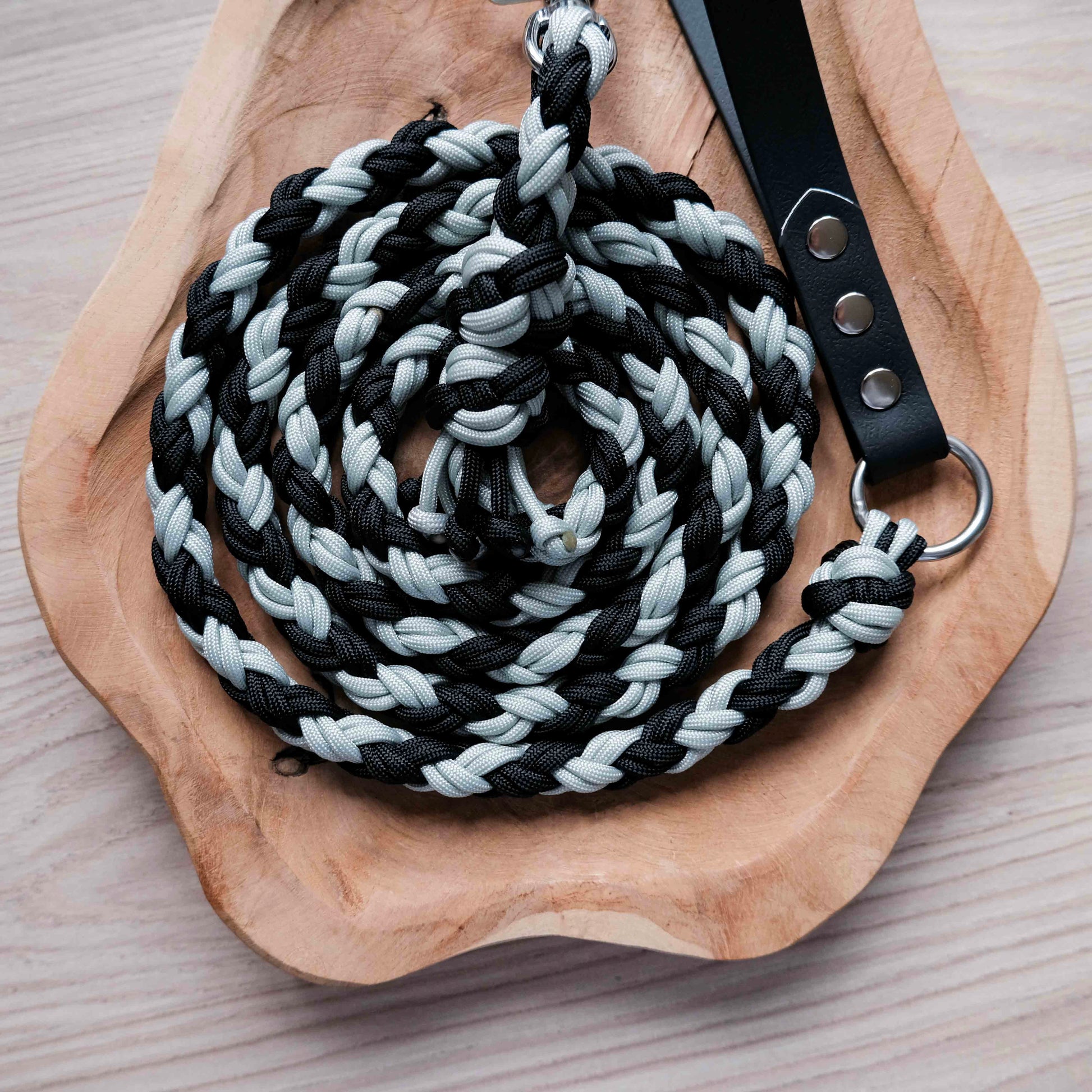 Vodítko je lehce pružné a ručně pletené ze čtyř 4mm širokých padákových šnůr.
