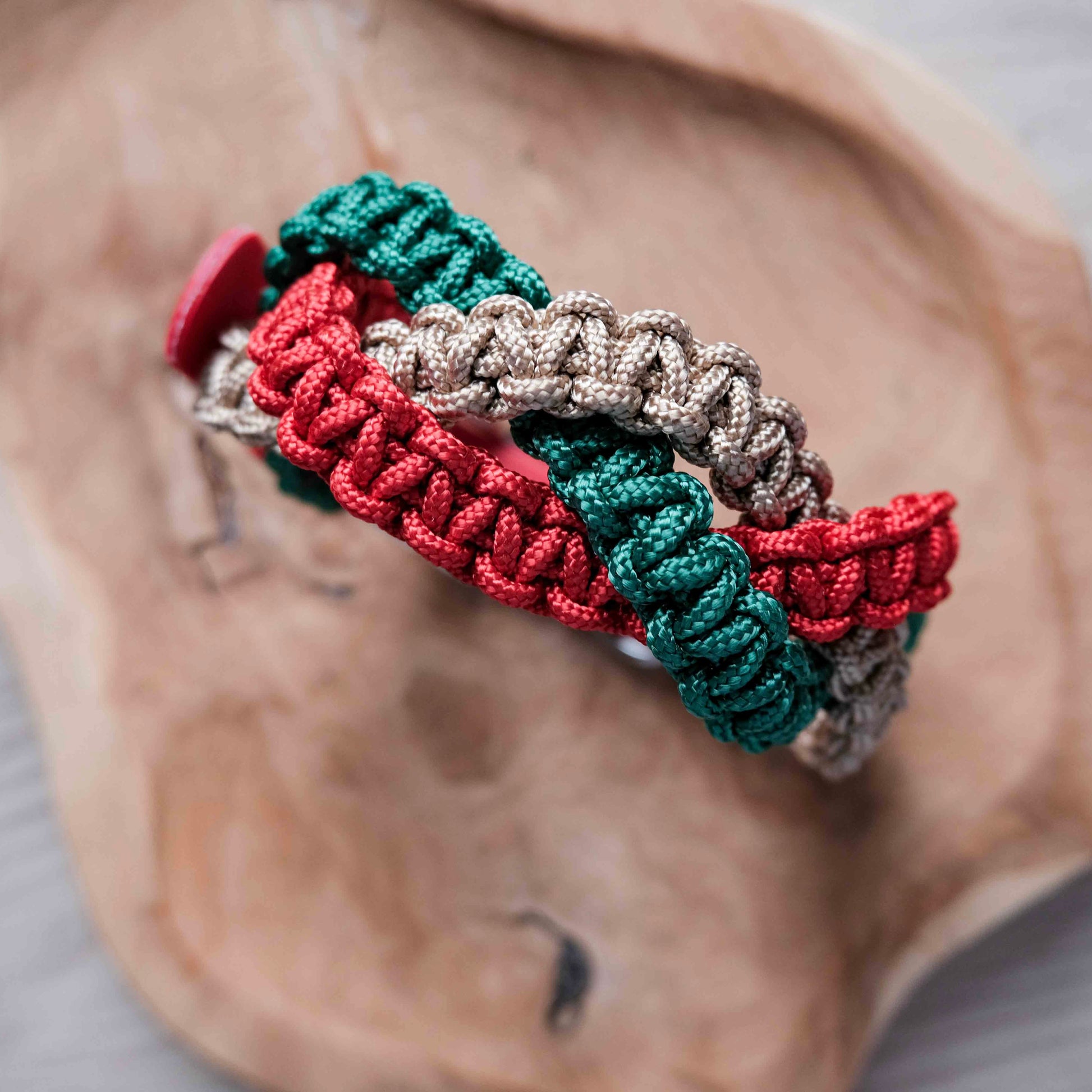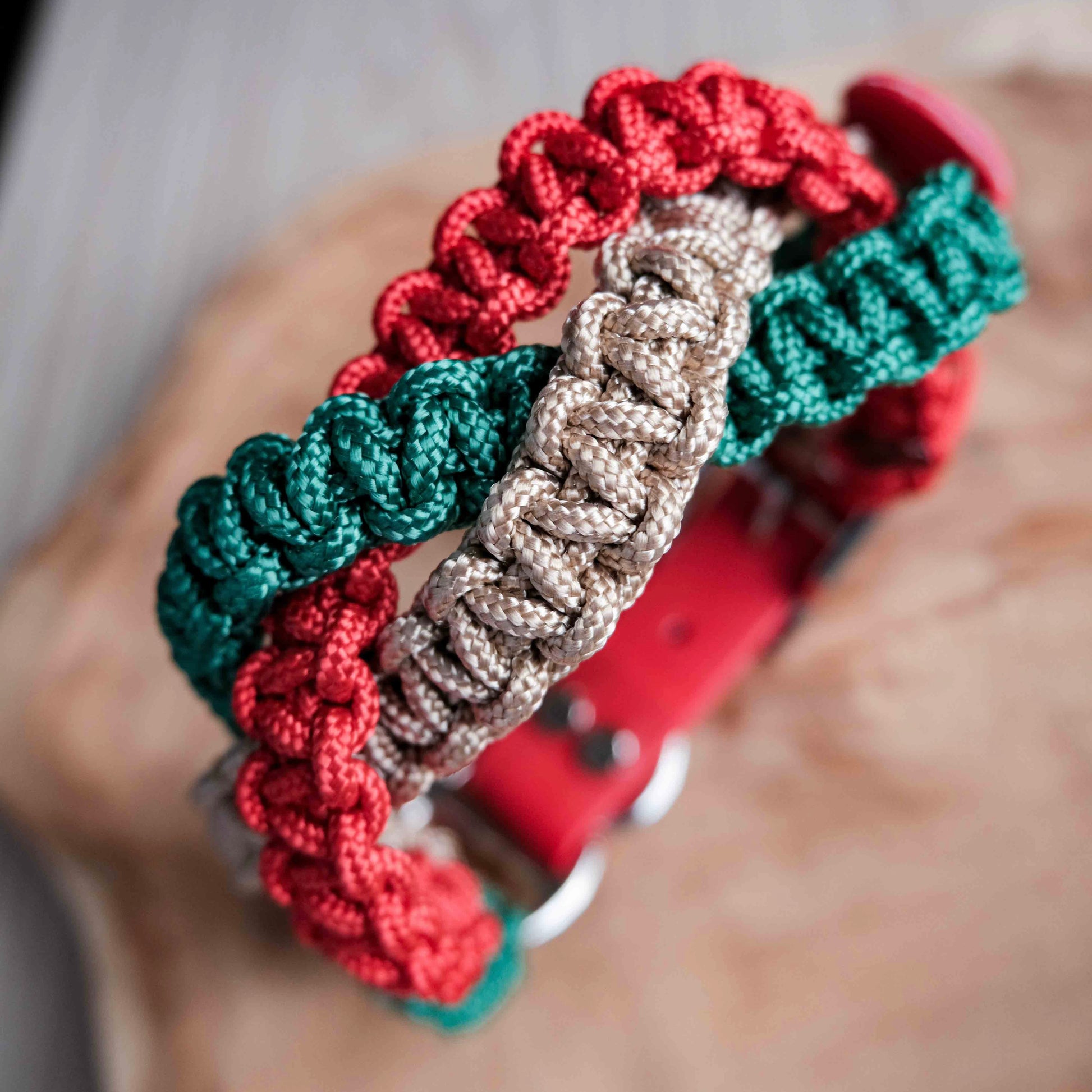 Paracordový obojek z padákové šňůry s biothanovým řemínkem v šířce 4cm. Je lehce omyvatelný vhodný pro jakoukoliv příležitost, ale speciálně pletený na Vánoce.